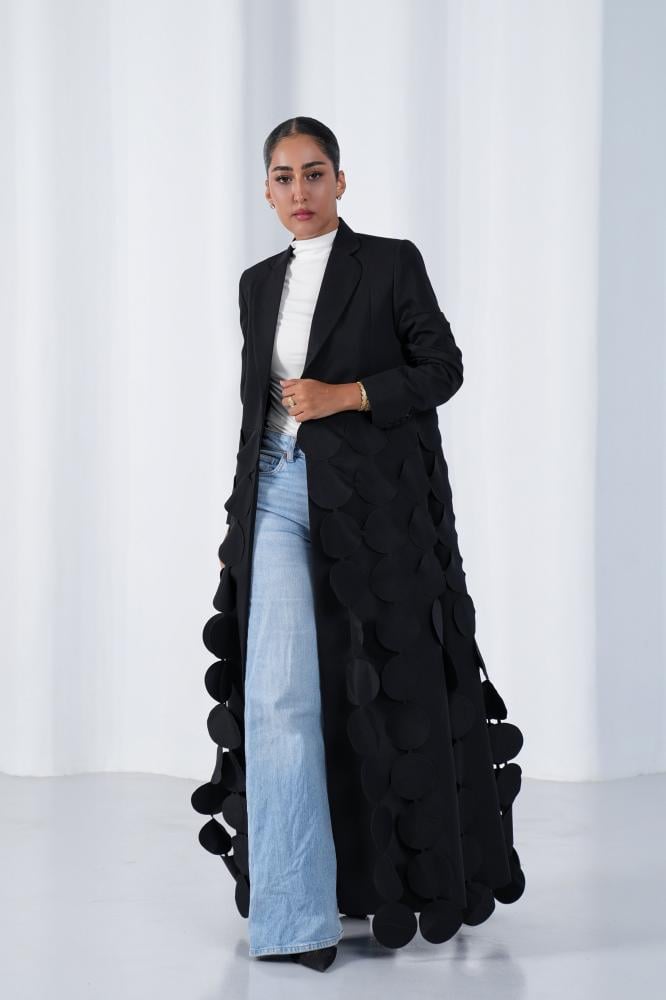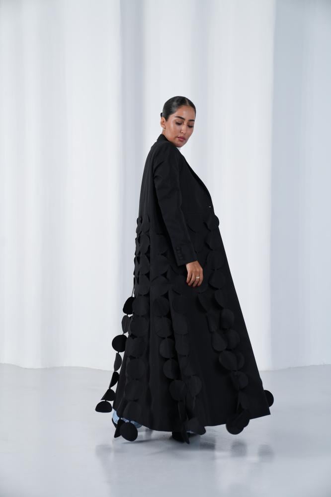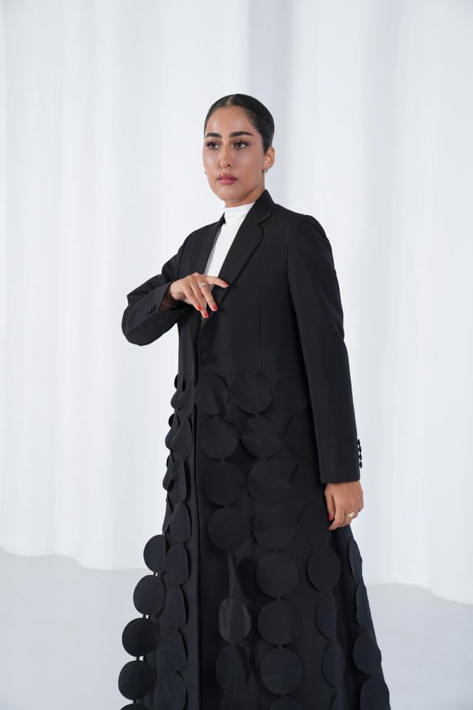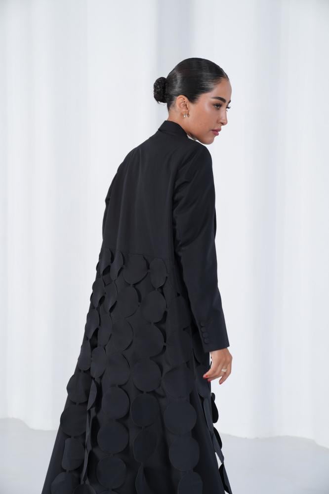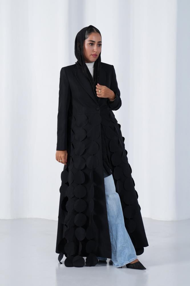 مواصفات عباية بليزر أسود بطبقات هدب: