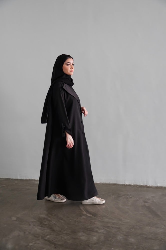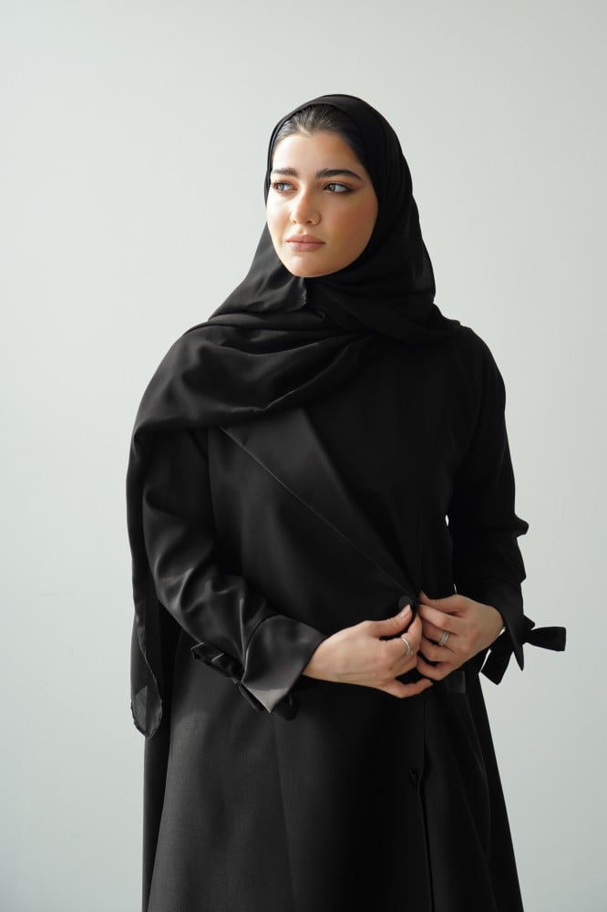 • عباية لف باغلاق داخلي ، من خامة الكتان الخفيف والتفتة ، بياقة واحدة مع طقطق مخفي من الداخل ، وجيب واحد جانبي.