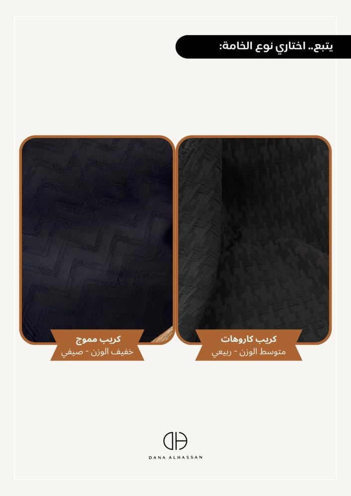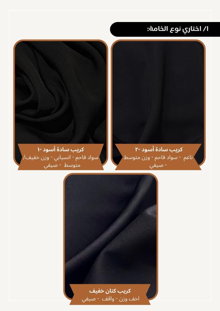 - الخامة: تتوفر خيارات متنوعة من الخامات حسب الرغبة.
