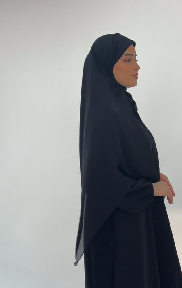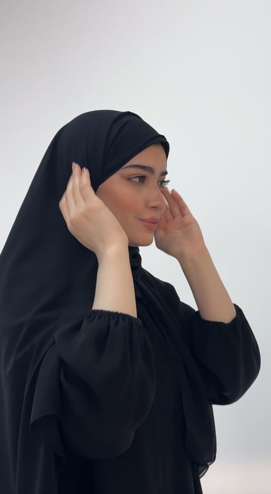 - A front-link veil made of high-quality chiffon and stretch cotton, for more comfort and stability, finished with chiffon for the entire veil in striking black.