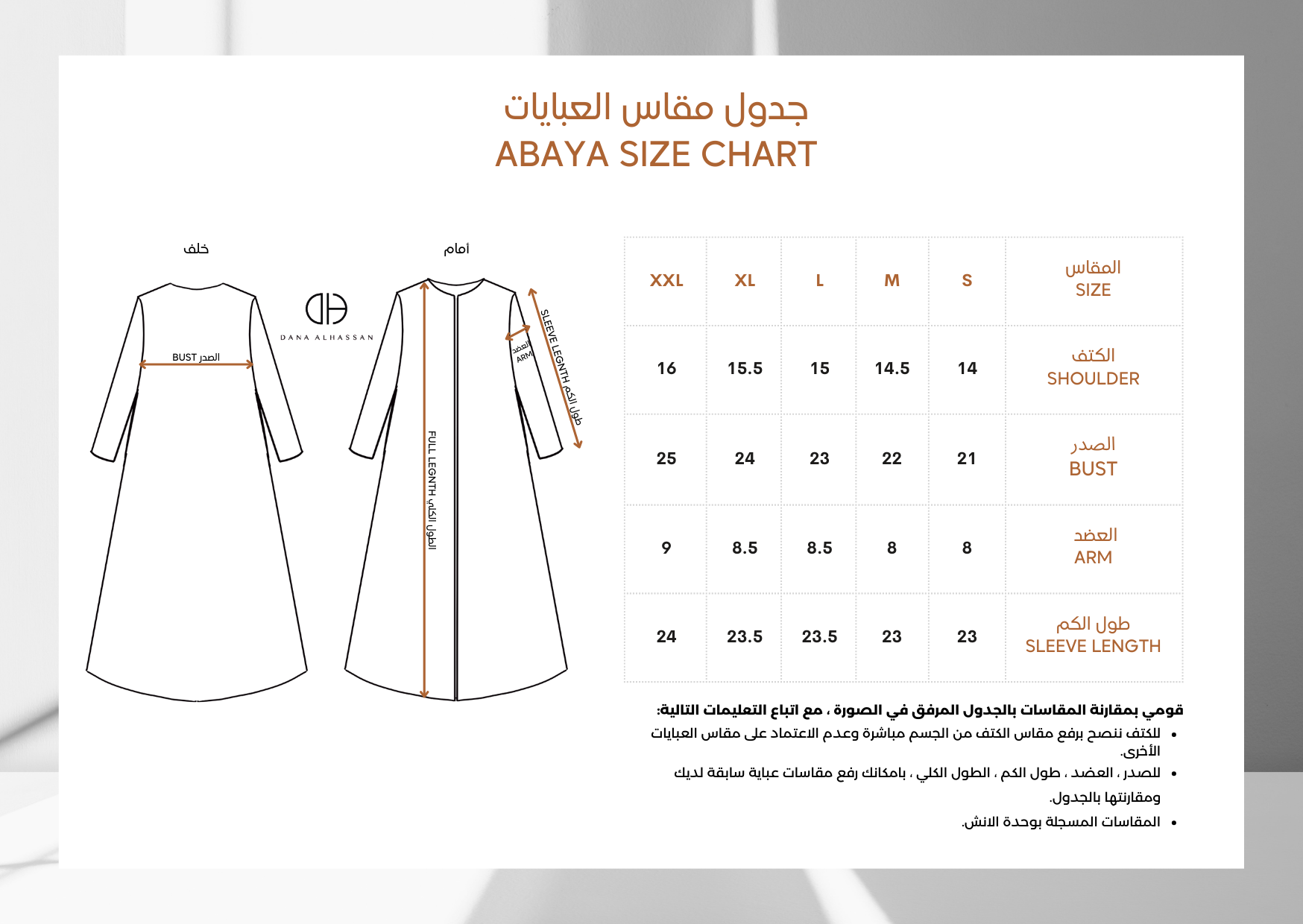 - Abaya made of distinctive Indian taffeta material, limited number of each design. With a wide cloche cut, a closed round collar, and internal shoulder padding.